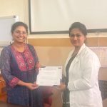 Certificate distribution to the resource person Dr. Sreekantham Sravyasree, Senior Resident, JSS Medical College and Hospital, Mysuru
