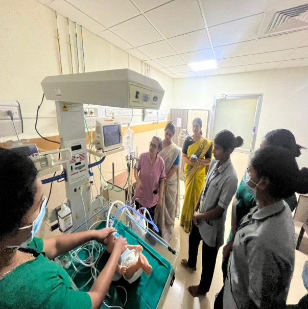 The resource person demonstrated the functioning, indications, precautions, and troubleshooting of various NICU equipment, including: